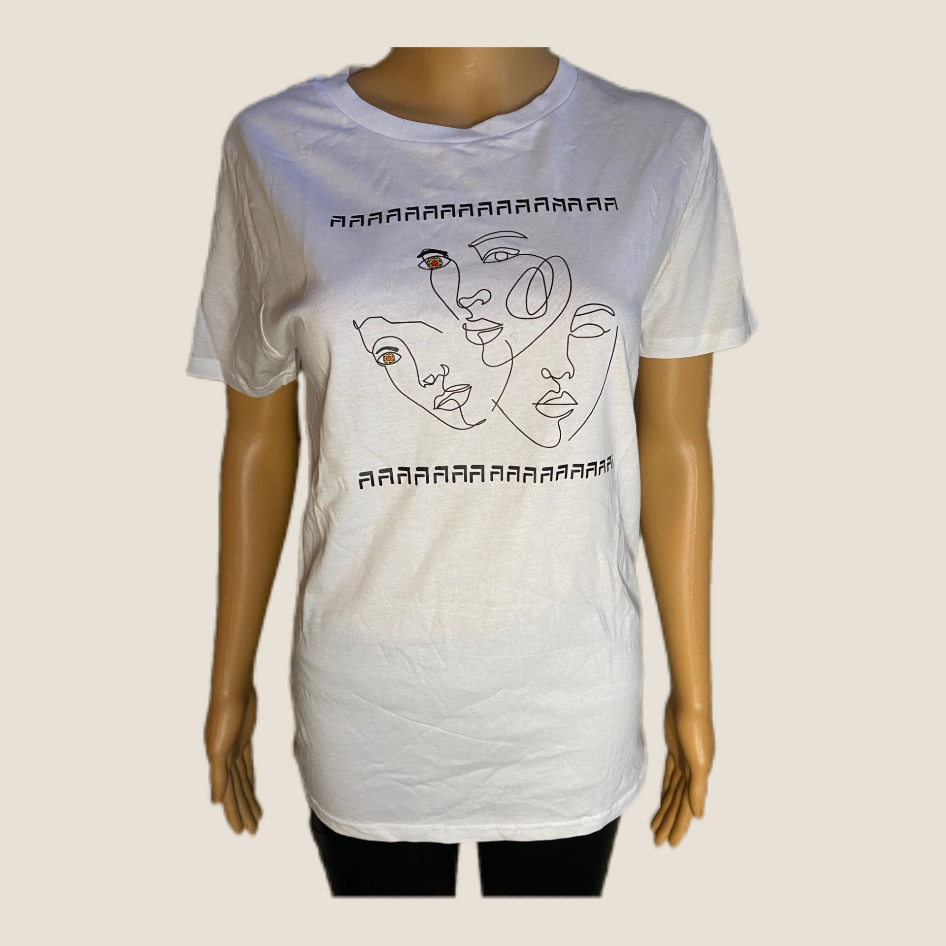 Unleash your inner Cultivated Girl with this 100% cotton t-shirt featuring 3 eye face images. Channel your unique and creative energy with this statement piece.